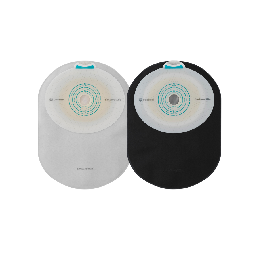 La poche une pièce fermée SenSura® Mio en coloris noir accompagne les personnes stomisées dans leur quotidien avec confort et de sérénité.