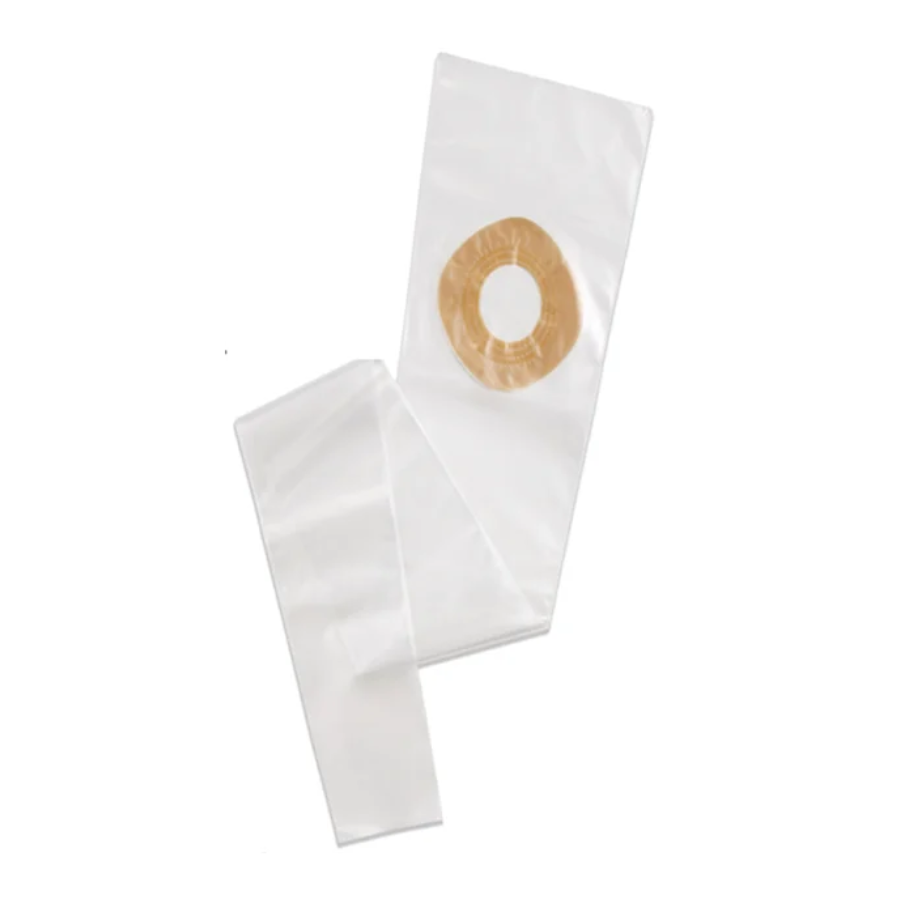 D’une longueur de 90 cm, il est conçu pour empêcher tout risque de fuite lors de l’évacuation des selles. Les deux pinces fournies permettent de fermer le haut du manchon quand le clamp vient obturer le bas du manchon, en attendant la fin de l’évacuation des selles.
