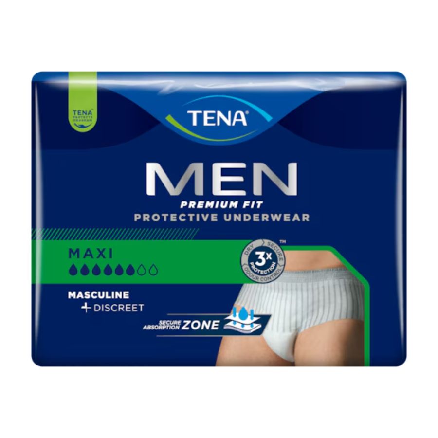TENA Men Premium Fit Maxi est un sous-vêtement absorbant pour hommes, conçu pour les fuites urinaires fortes. Il combine l’apparence d’un sous-vêtement classique avec la protection avancée TENA, permettant de rester actif, confiant et autonome dans toutes les situations du quotidien.