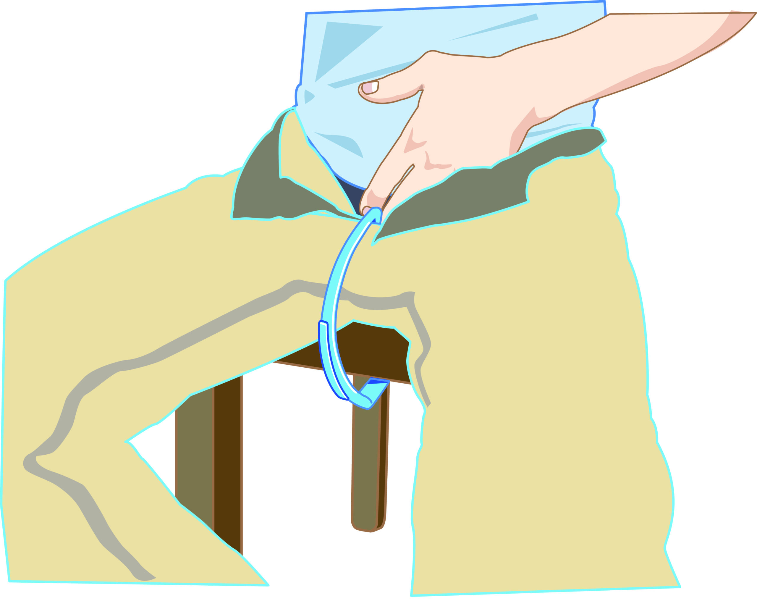 Maintient le vêtement hors de contact de la zone génitale, laissant les deux mains libres pour le sondage.