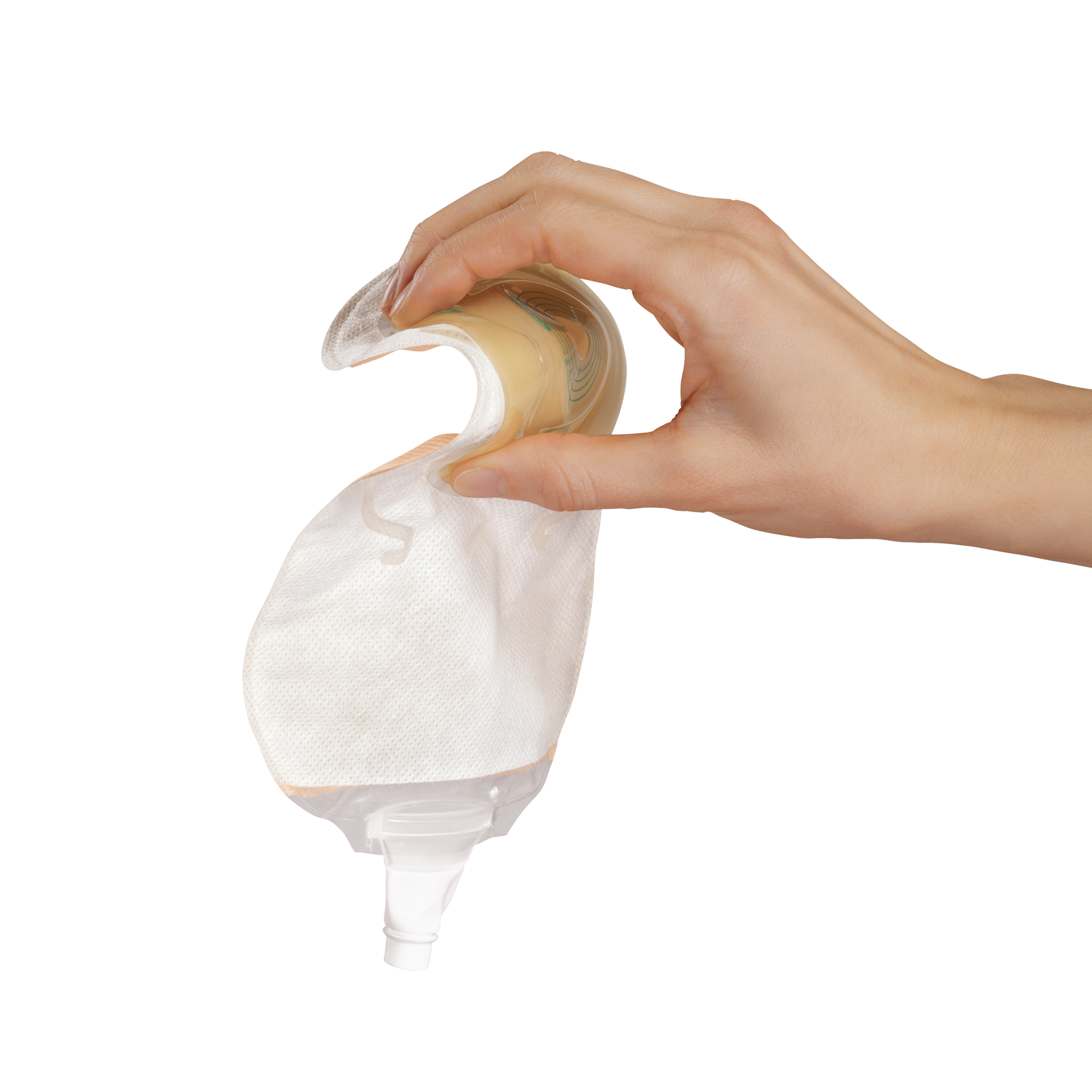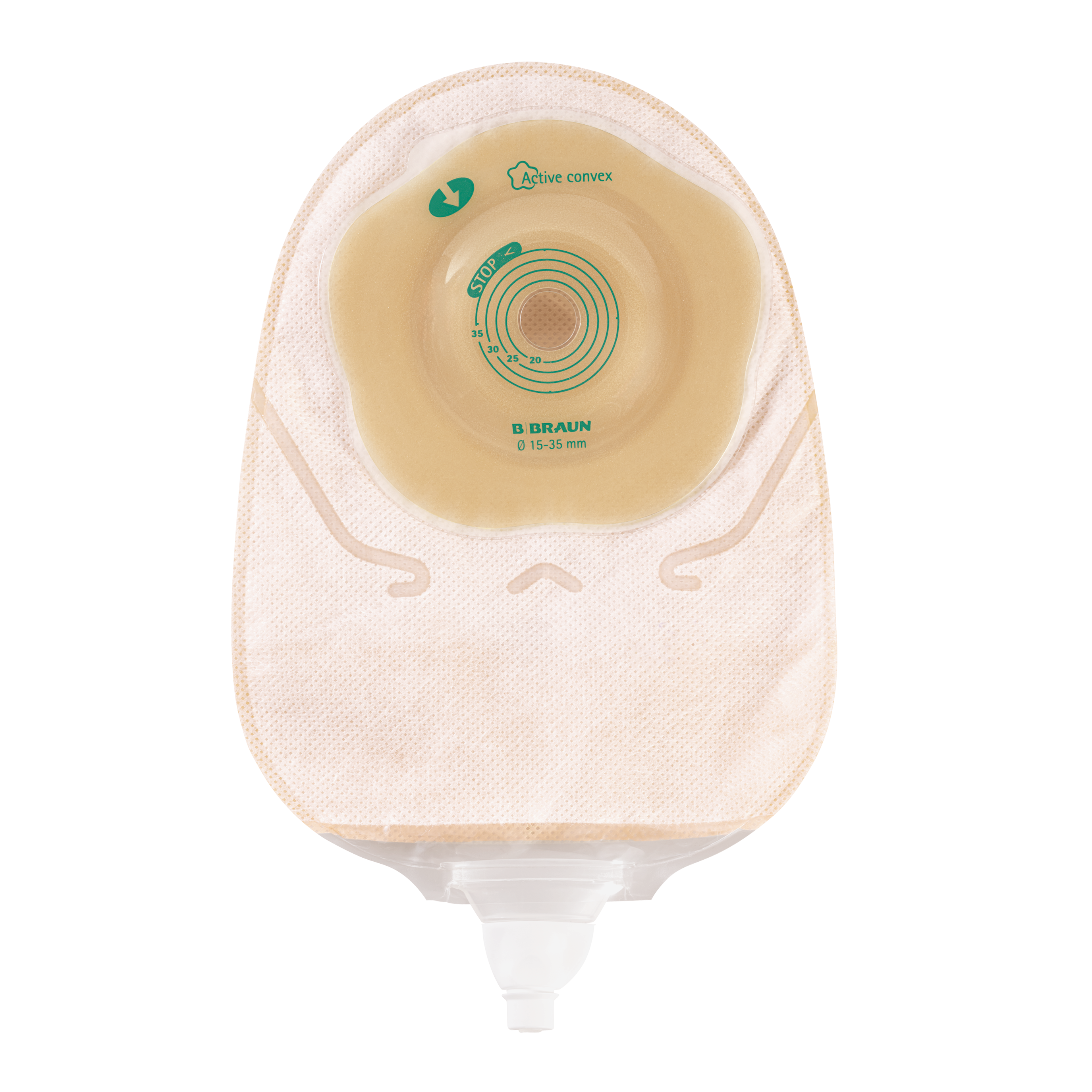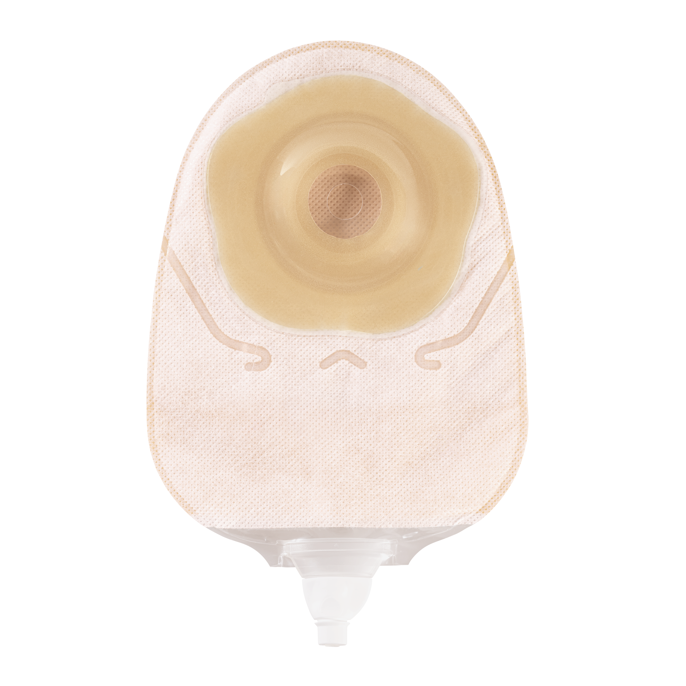 Système de recueil 1 pièce vidangeable avec un protecteur cutané total convexe souple et une valve anti-reflux.